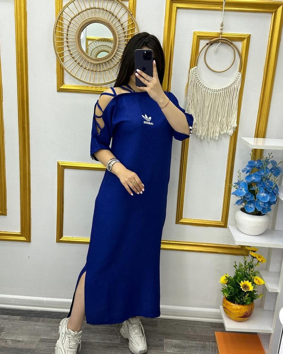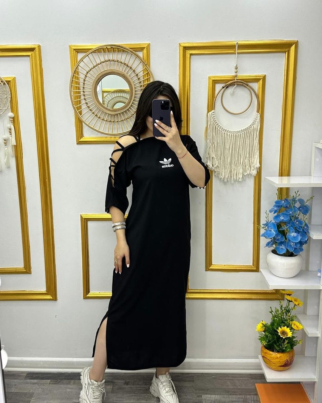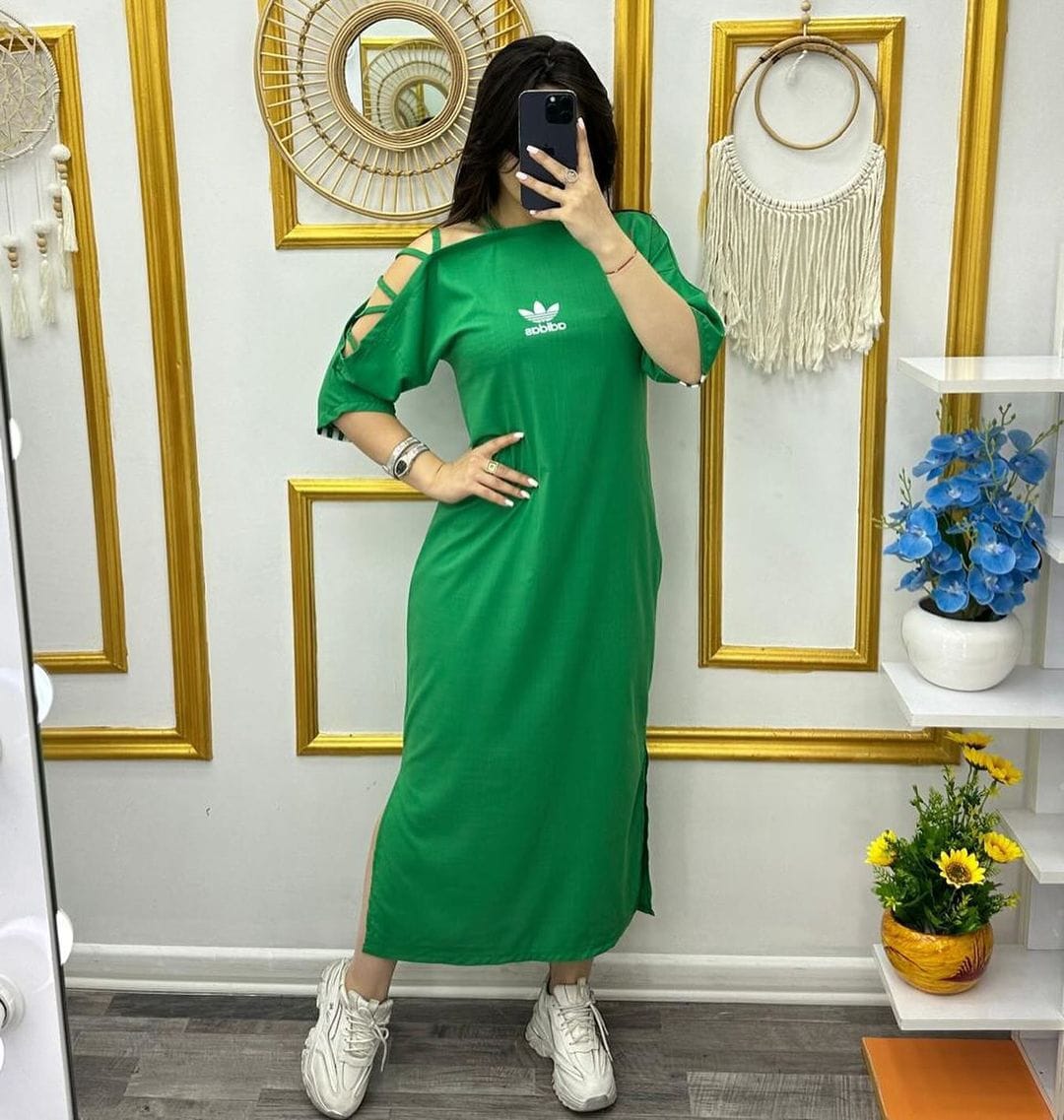 فستان طويل بتصميم رياضي أنيق ومريح، يتميز بقصّة مميزة عند الأكتاف مع تفاصيل أربطة جانبية وشق جانبي. مثالي لإطلالة عصرية ومريحة تناسب الأنشطة اليومية. متوفر بثلاثة ألوان جذابة: الأخضر، الأزرق، والأسود.