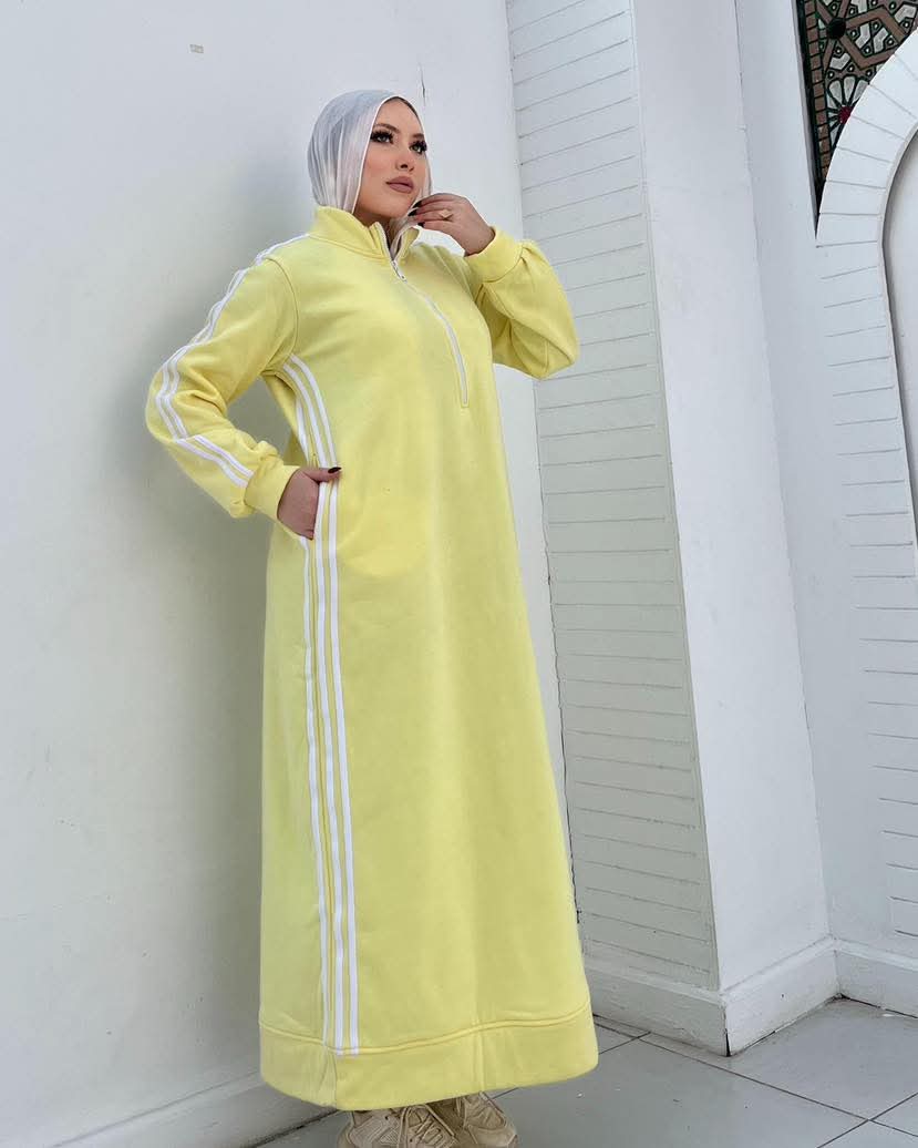هودي دريس مريح وعصري، يجمع بين الأناقة والراحة. يتميز بتصميم طويل وواسع مع خطوط بيضاء رياضية على الأكمام والجانبين، وسحاب في الأمام. مثالي للإطلالات الكاجوال اليومية، ومصنوع من خامة ثقيلة ودافئة تجعله مناسبًا للطقس البارد. متوفر بألوان متنوعة وعصرية مثل الأخضر، الأسود، الأصفر، الأحمر، والبنفسجي.